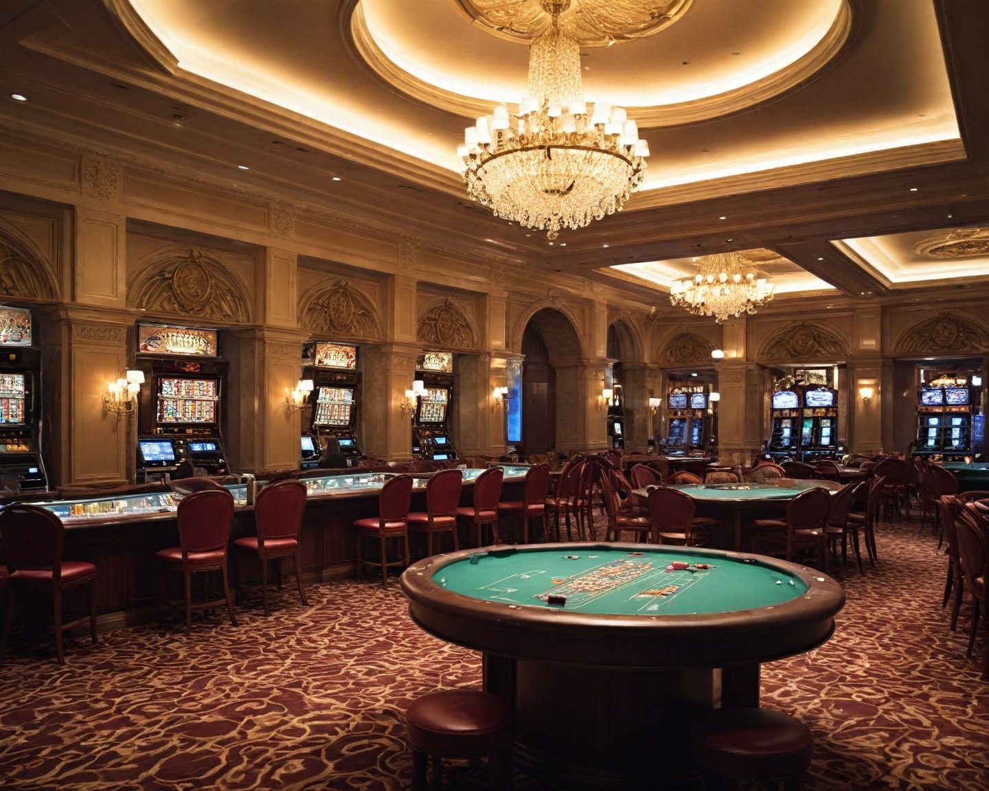 A iluminação em cassinos é usada para criar um ambiente específico, destacando áreas de jogo e estabelecendo a atmosfera geral. Variações de intensidade e cor ajudam a guiar os visitantes e a diferenciar os espaços.